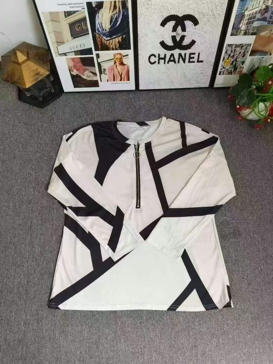 欧美外贸款时尚印花领口拉链宽松长袖 数量930件左右 码数S--5XL 整款四个色 独立拉链包装 货品干净整洁