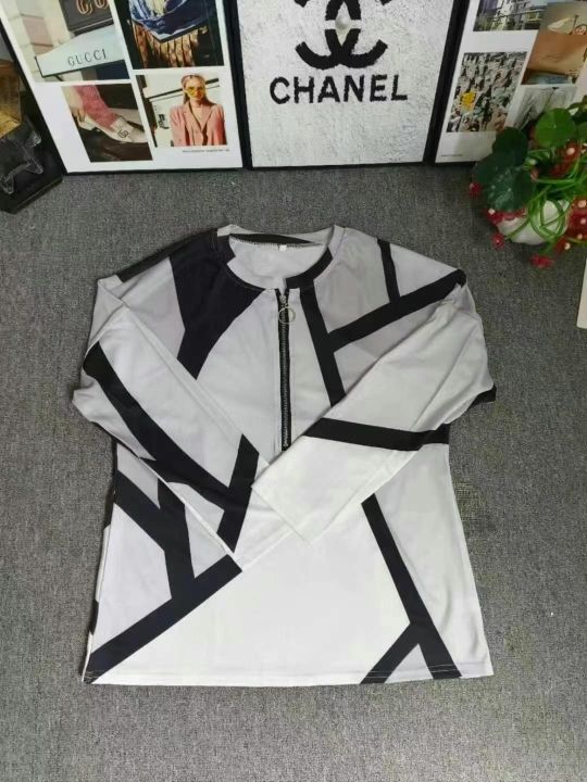全清4.8 分➕1 欧美外贸款时尚印花领口拉链宽松长袖 ...