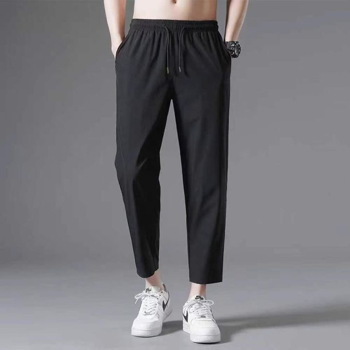 男士夏季新款弹力冰丝透气松紧腰休闲裤,独立包装带吊...