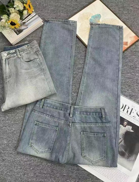 春夏新款女装可调节腰头宽松垂感直筒阔腿牛仔裤,独立包装,码数SM码(偏大1个码腰围看图),475条,全清10.8元超低价秒杀!分货加一!