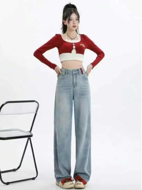 加绒阔腿显瘦高腰复古宽松直筒牛仔裤,单款单色,独立包装,数量1700,XS-2...