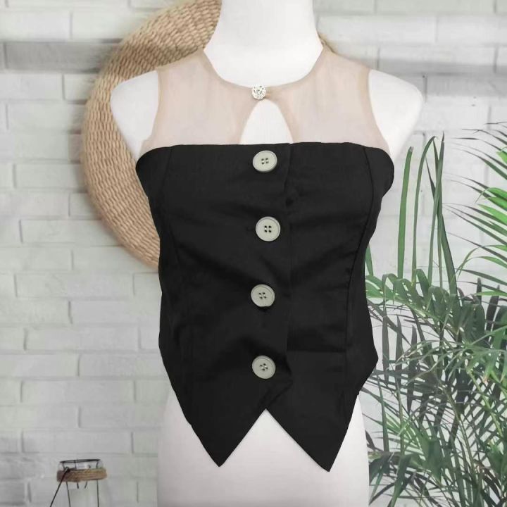 2.8元打包[勾引][勾引] 网纱拼接吊带背心独特别致纯...