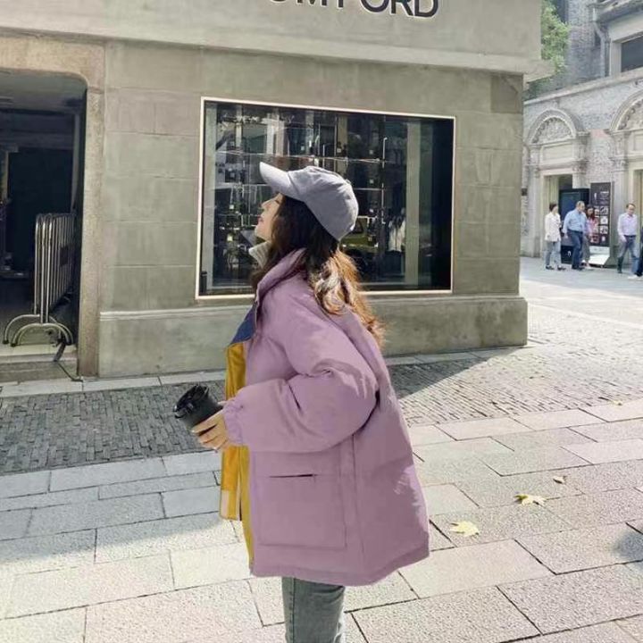 羽绒棉服女装,韩版宽松港风学生ins面包服加厚棉衣冬季外套,独立包装,码数S-M(120-150斤左右穿)紫色多,数量1000件,全清25元,分货➕1
