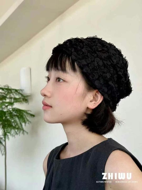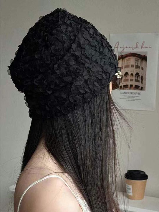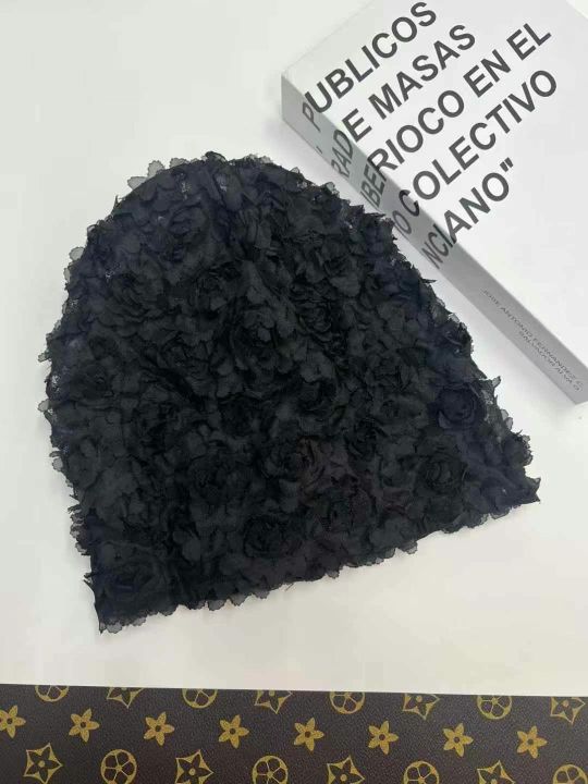 原创设计辣妹类似花朵包头日系搭配堆堆帽,数量98个,黑色,无独立包装。