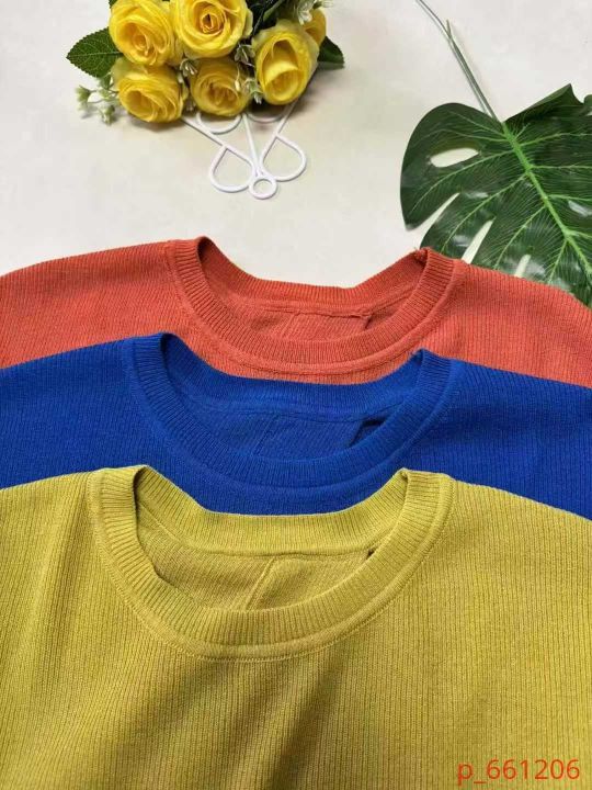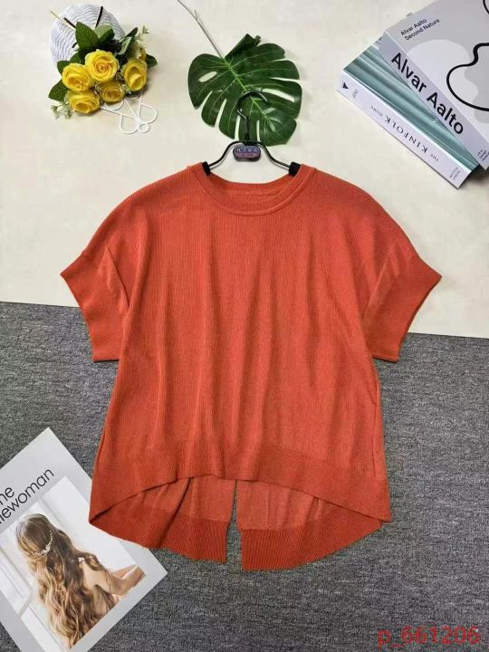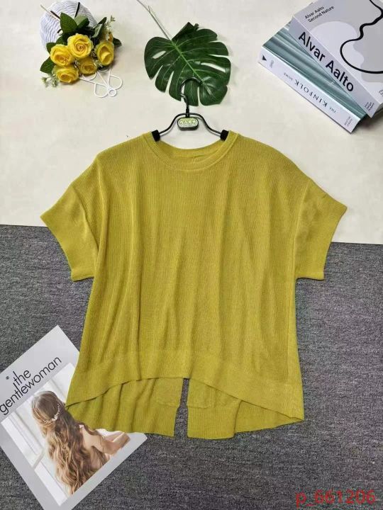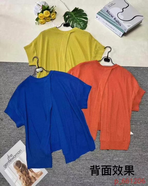 时尚洋气圆领短袖针织衫上衣,背面开叉设计,整款三色,品质好,都有独立包装,均码,240件,清5.9 Fashionable Round Neck Short Sleeve Knit Top, Back Slit Design, Three Colors in Total, Good Quality, All Individually Packaged, One Size, 240 Pieces, Clearance 5.9 بلوزة صوفية بأكمام قصيرة ورقبة مستديرة، تصميم شق من الخلف، ثلاثة ألوان في المجموع، جودة جيدة، جميعها معبأة بشكل فردي، مقاس واحد، 240 قطعة، تصفية 5.9_@_@