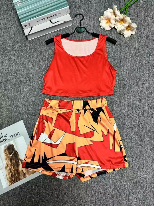 6.5元全清,跨境欧美休闲女装夏威夷沙滩度假风数码印花背心短裤两件套,图片款,品质好,有独立包装包装,S-2XL,390套左右