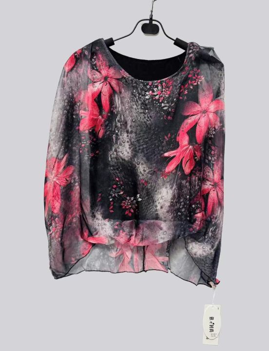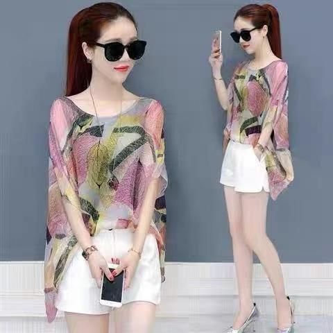 4.5元全清,夏季前短后长雪纺衫女装新款蝙蝠衫短袖宽松衣服遮肚子上衣潮,花型图案多,品质好,独立包装带吊牌,S-XL,1280件左右