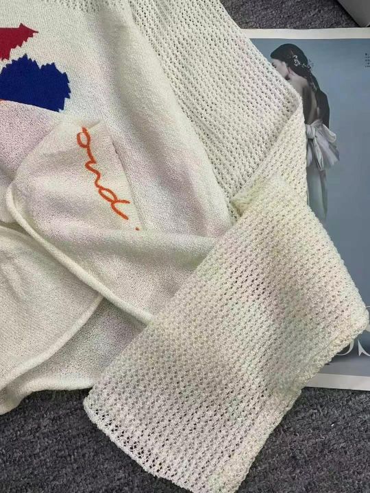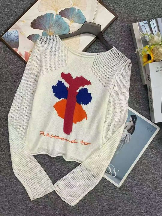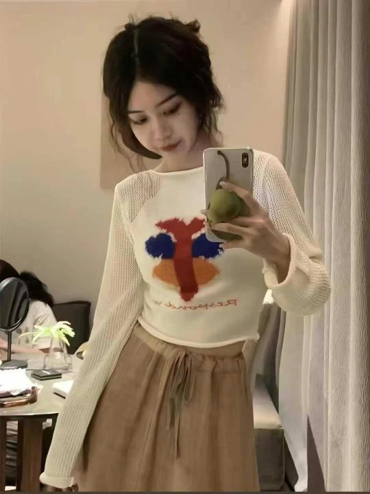 早秋新款甜辣纯欲风涂鸦提花长袖针织套头毛衣,独立包...