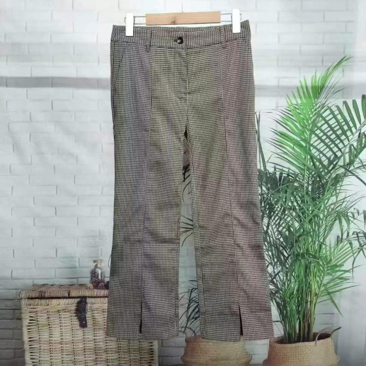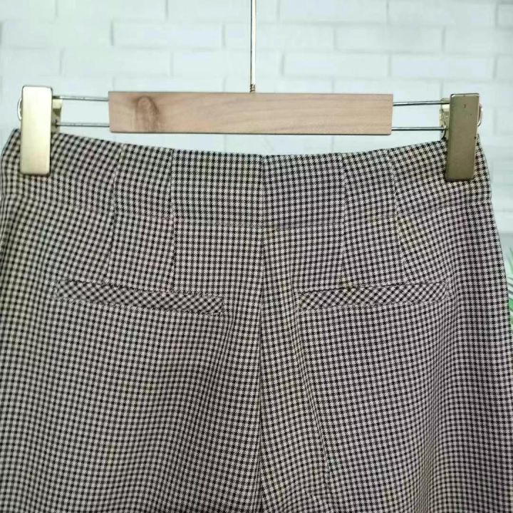 4.5元秒杀[庆祝][庆祝] 英伦格子拼色梭织休闲女装裤,独立包装,码数XS-L...