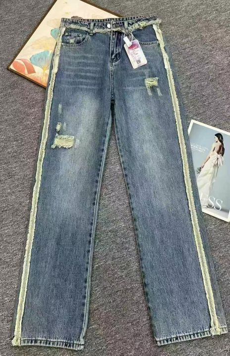 春夏高品质高街破洞窄版设计款阔腿牛仔裤,独立包装带...