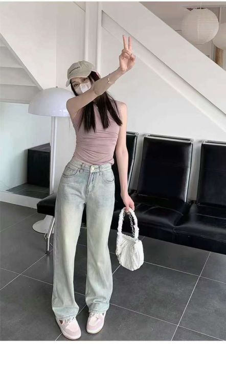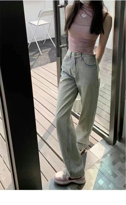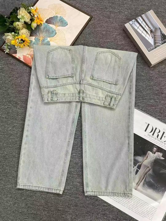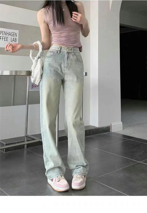 春秋季女装复古洗水棉直筒阔腿牛仔裤,独立包装,码数...