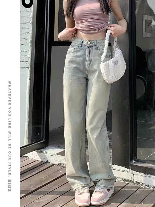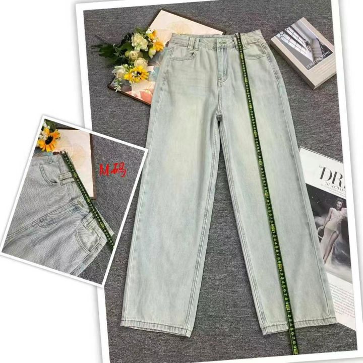春秋季女装复古洗水棉直筒阔腿牛仔裤,独立包装,码数...