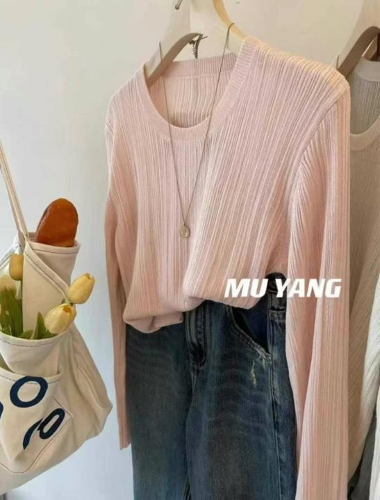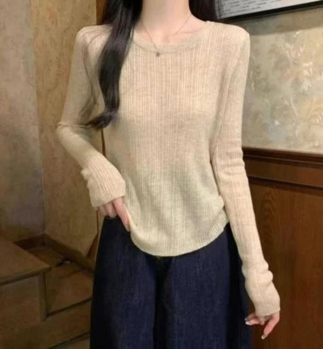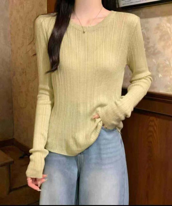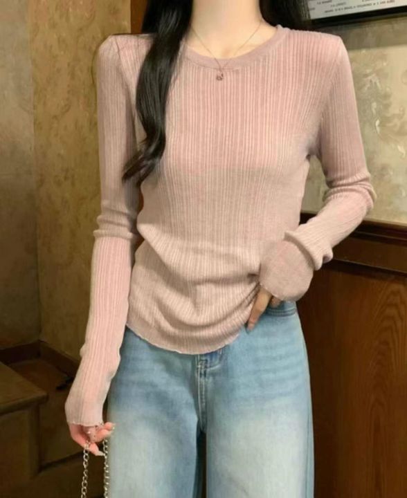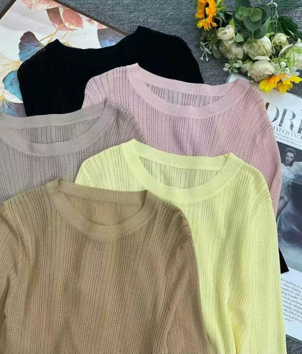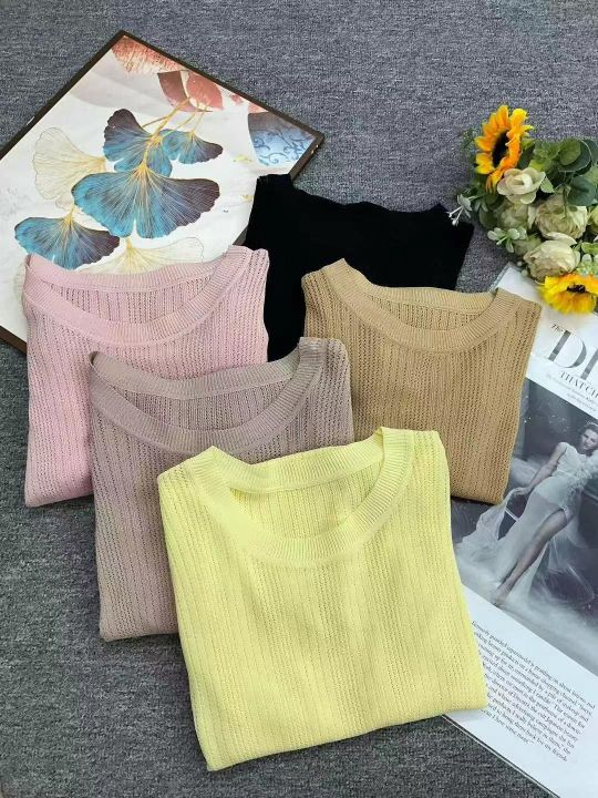 春夏新款韩版五分袖冰丝高弹力修身显瘦薄款针织小衫,...