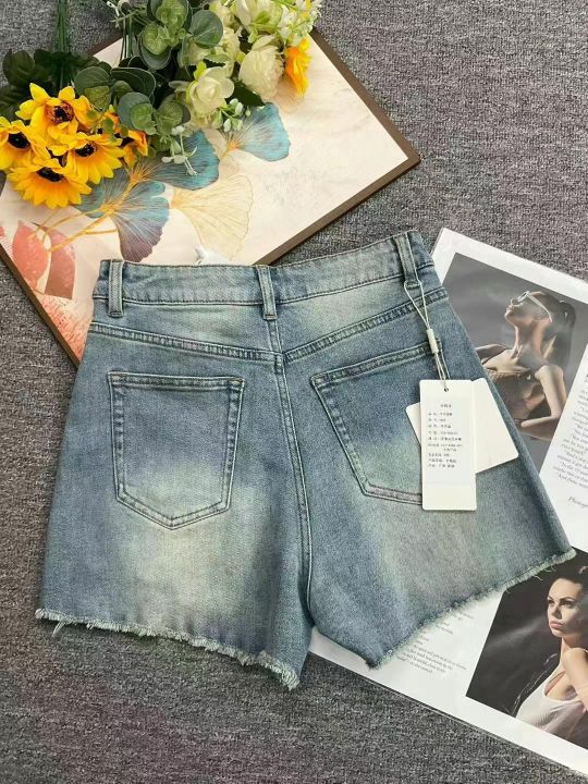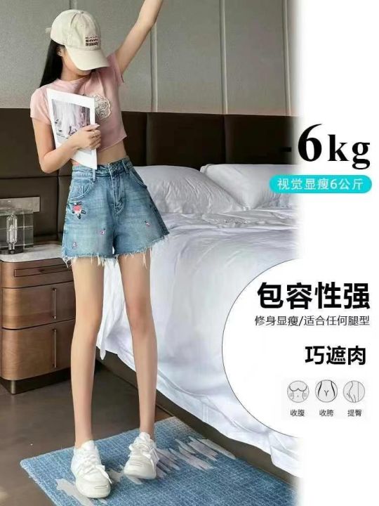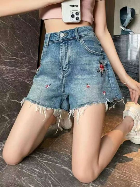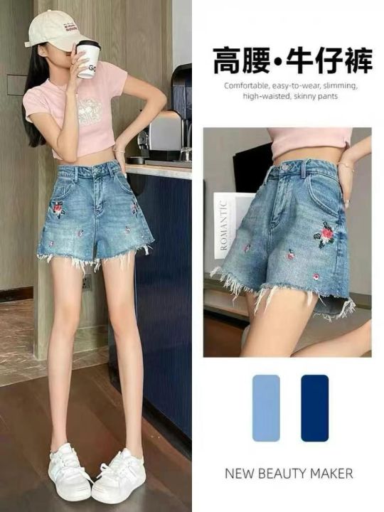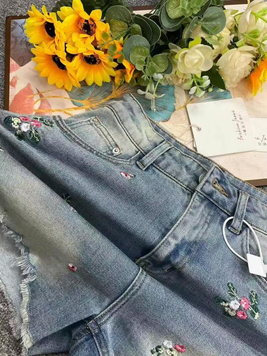 春意新款高弹力复古碎花刺绣牛仔短裤,独立包装带吊牌...