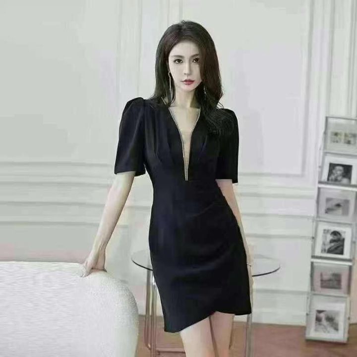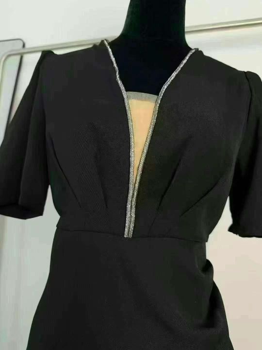 法式赫本风高级感小黑裙V领修身显瘦包臀裙2025夏季新款连衣裙