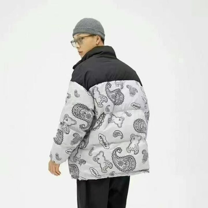 国潮腰果花潮牌宽松大版拼色面包服羽绒棉服,男女同款,80件左右,均码大版型穿90-180斤,工厂新货,清仓库腾地方,原包原吊无瑕疵,超高性价比,捡漏好货