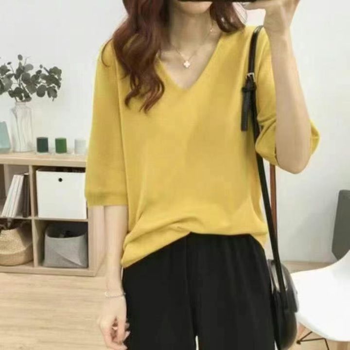 春夏季新款女装简约净版宽松气质V领包芯纱针织套头毛衣,独立包装,码数S--2XL码,1500件左右,全清5.9元超低价秒杀!分货加一!