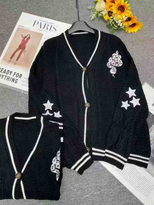 秋冬新款宽松慵懒风刺绣麻花设计款毛衣开衫,独立包装,码数S-2XL码,966件...
