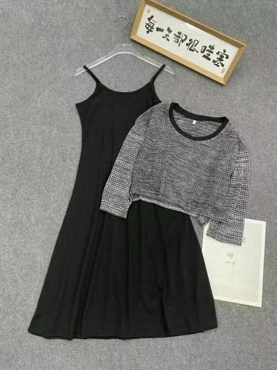 吊带两件套连衣裙160件10.8,面料有弹力,下摆开叉,...