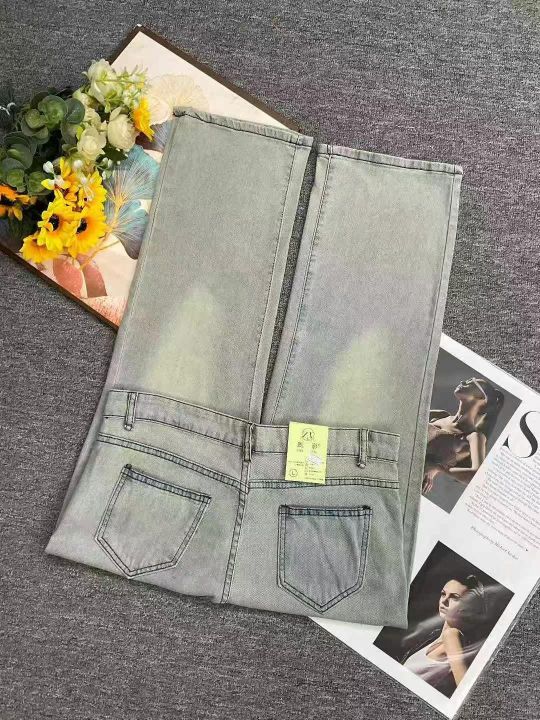 春秋新款高弹力女装洗水棉直筒牛仔裤,独立包装带吊牌...