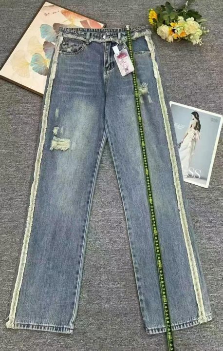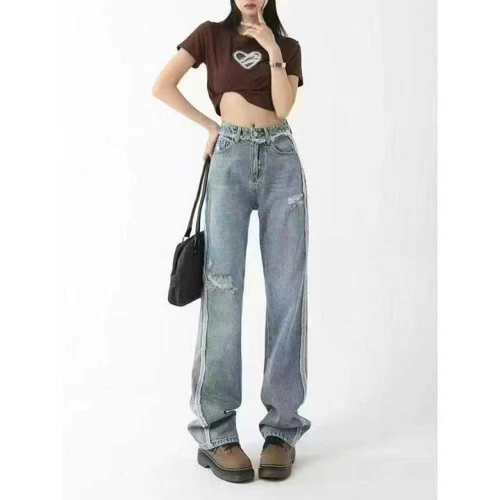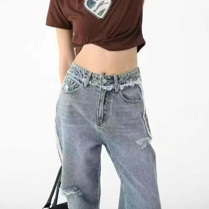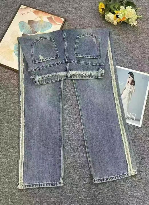 春夏高品质高街破洞窄版设计款阔腿牛仔裤,独立包装带...