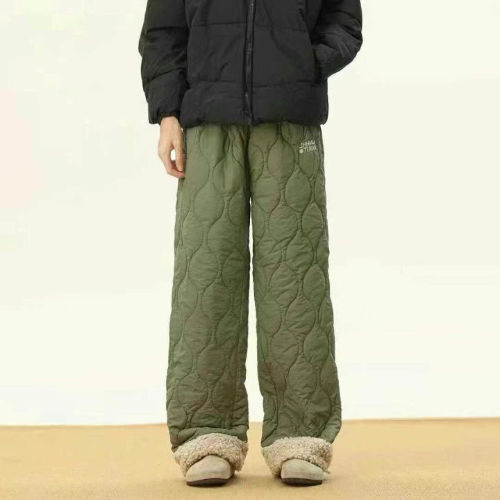 防寒休闲羊羔保暖裤男女冬季潮宽松葫芦纹防水直筒裤加...