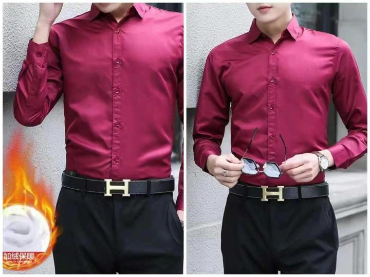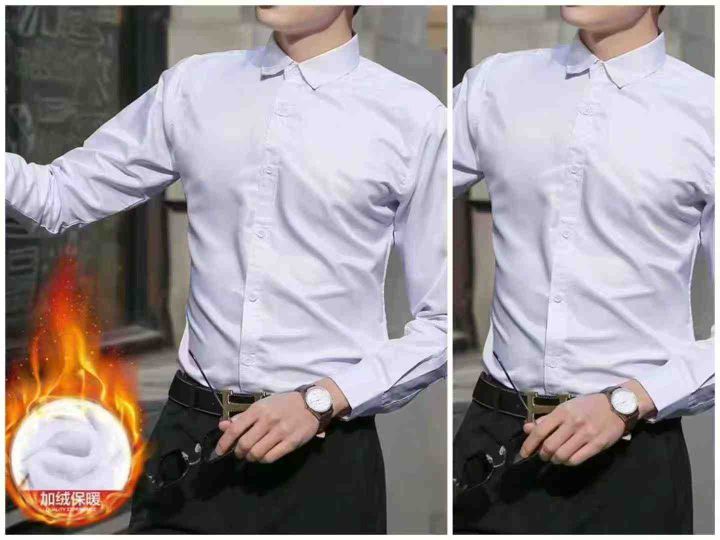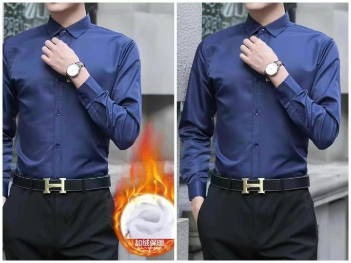 品牌男士时尚加绒加厚百搭商务休闲纯色衬衫,独立包装...