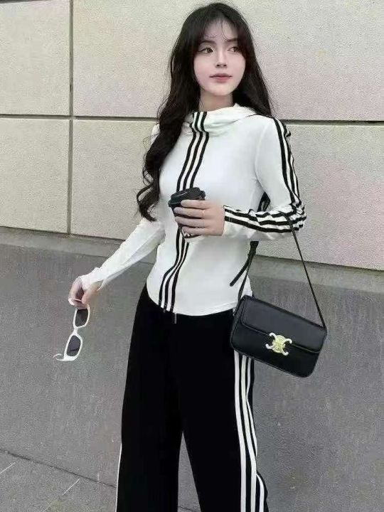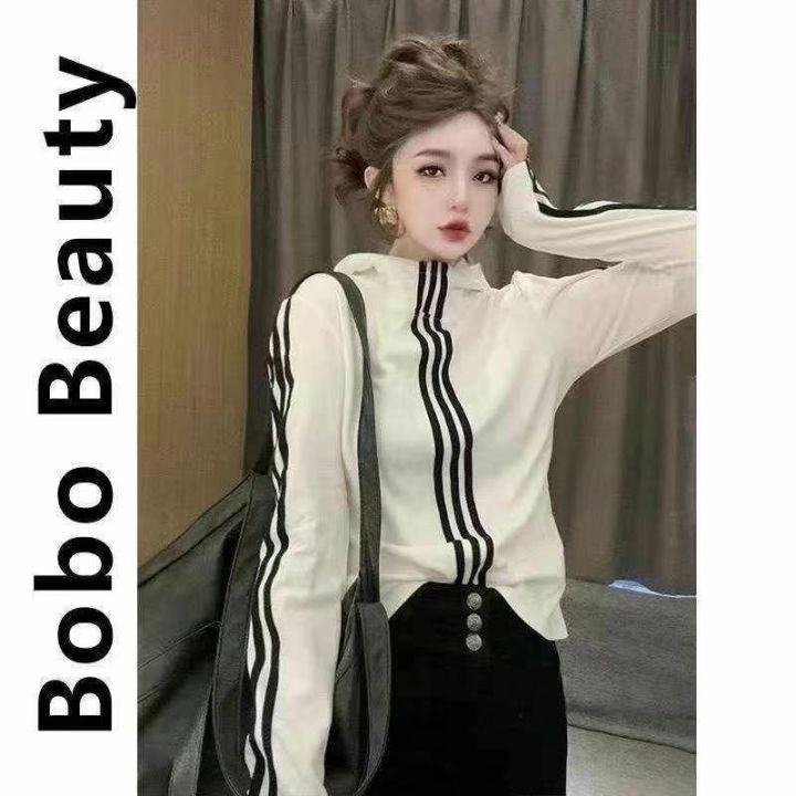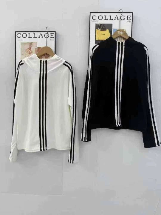 2025春秋新款德绒连帽打底衫女休闲条纹三条杠长袖时尚显瘦女上衣,数量205件,码数S-3XL,独立包装,货品干净漂亮,