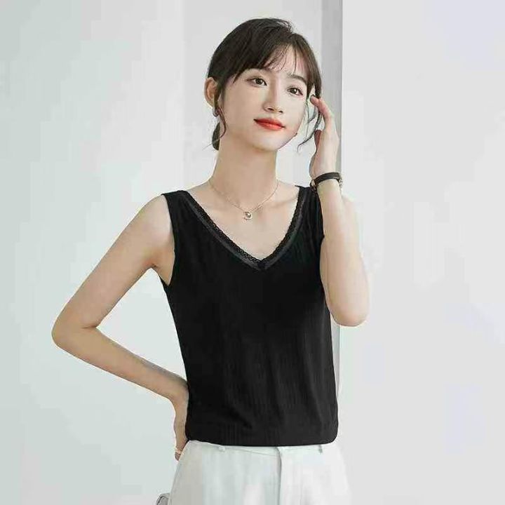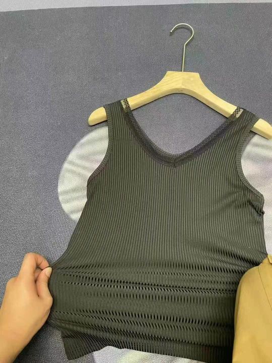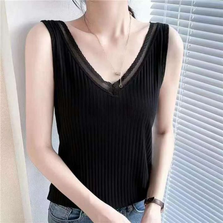 天猫在售款140件左右夏季薄款冰丝坑条蕾丝花边外穿工字背心,单款单色,M-2XL,独立包装带吊牌