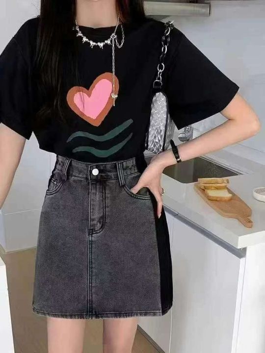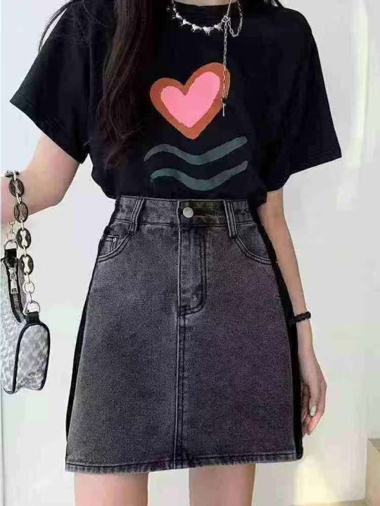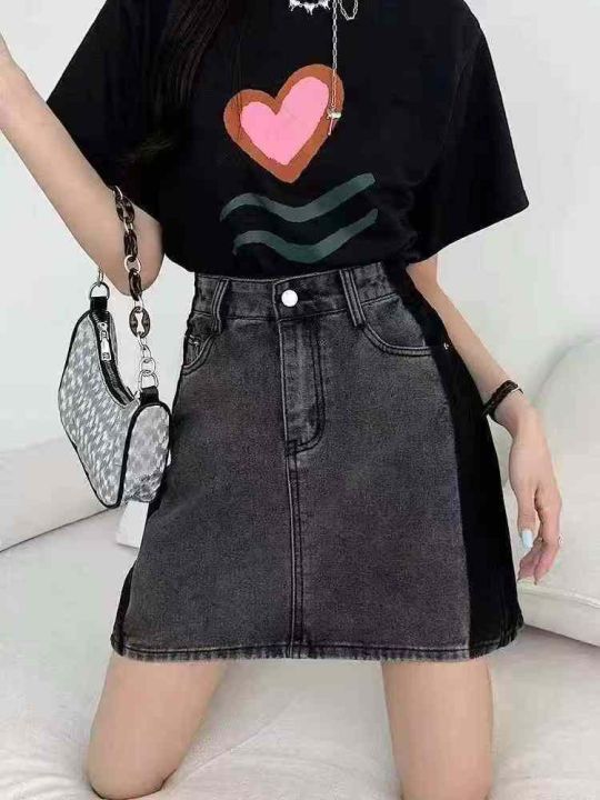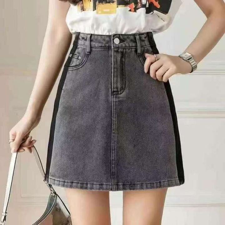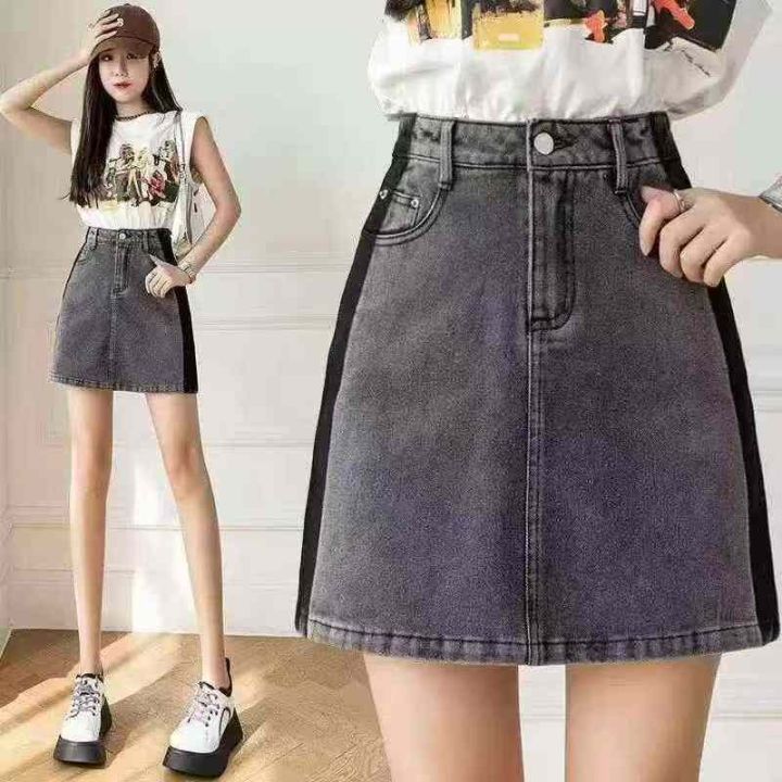 ☕️辣妹拼接撞色牛仔短裙女夏季显瘦复古百搭高腰a字半身裙50条全清8.8元,码数XS S M ,独立包装。