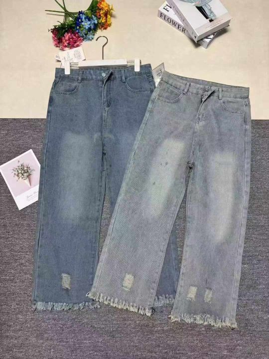 时尚洋气毛边破洞直筒牛仔裤550件,码数:XS-3XL,整款两色,品质好,内包边包条,独立包装带吊牌,全清8.8元。分货➕1。