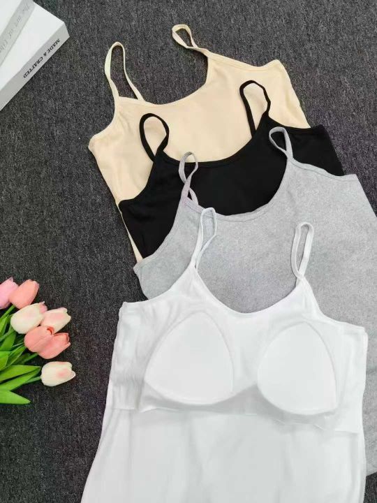 带胸垫纯色小吊带背心女夏纯欲少女外穿内搭修身美背打...