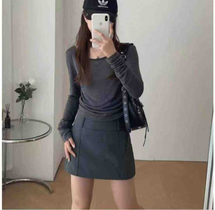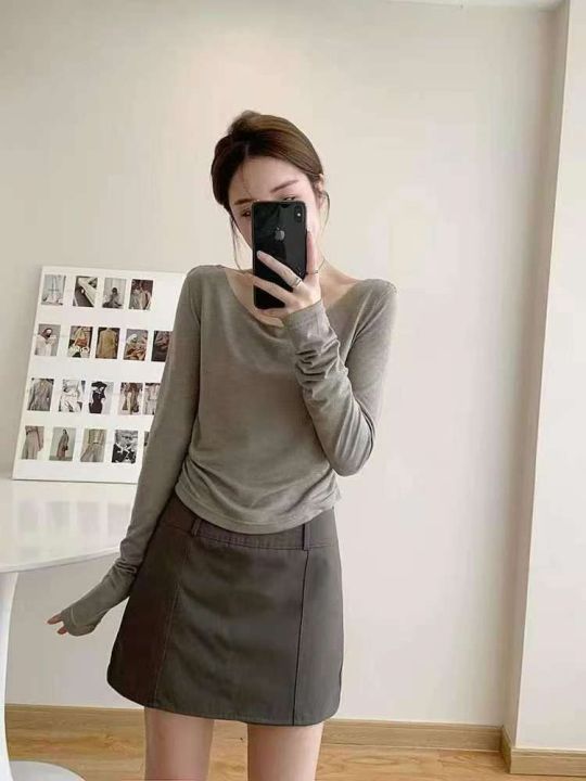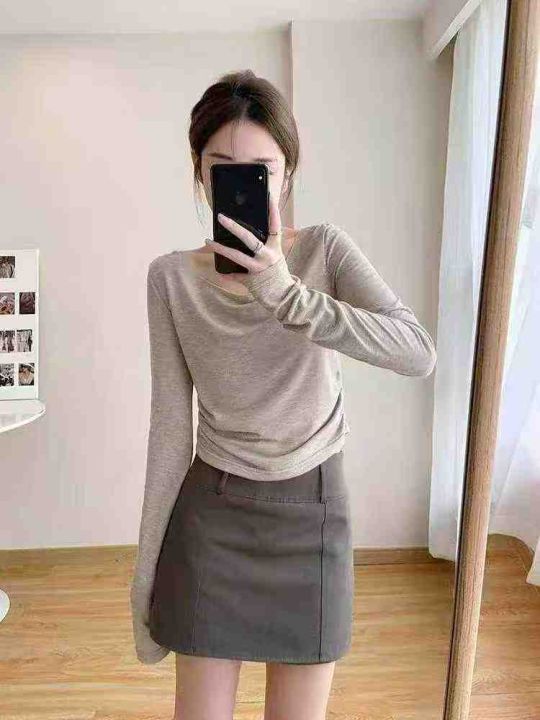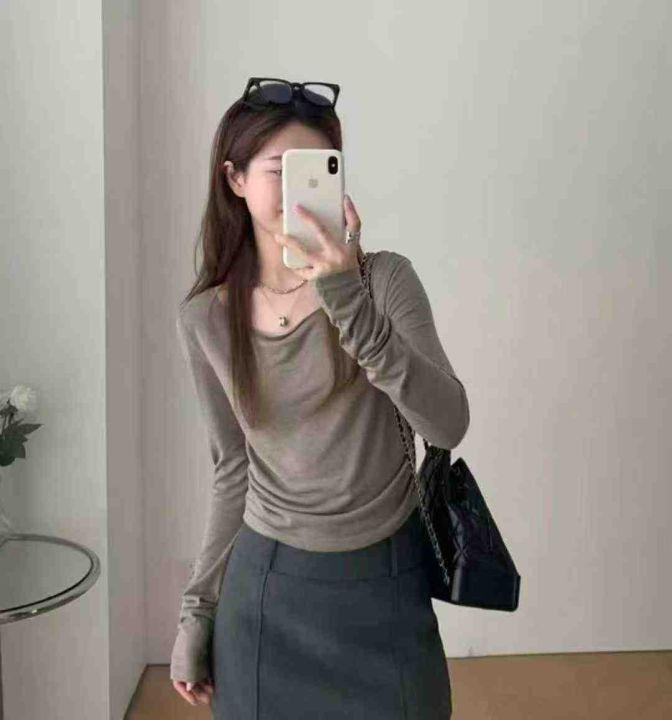 早秋新款高弹力韩版设计款收腰显瘦针织长袖小衫,独立...