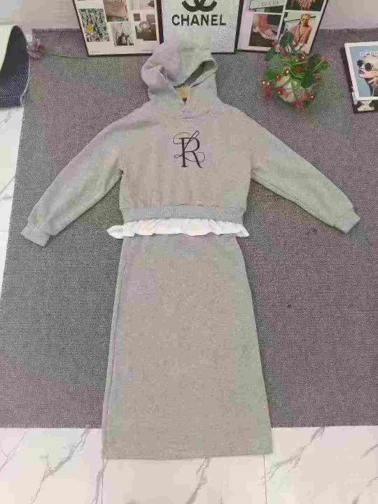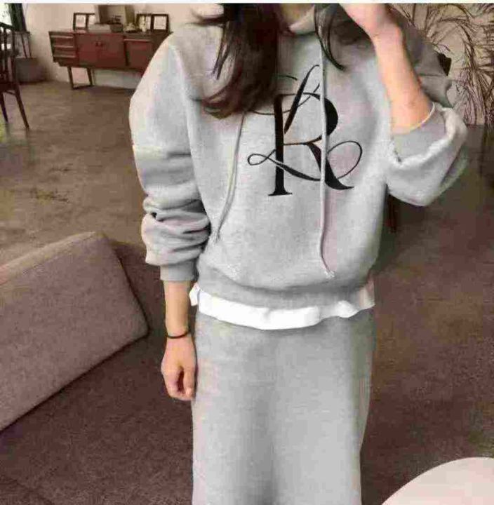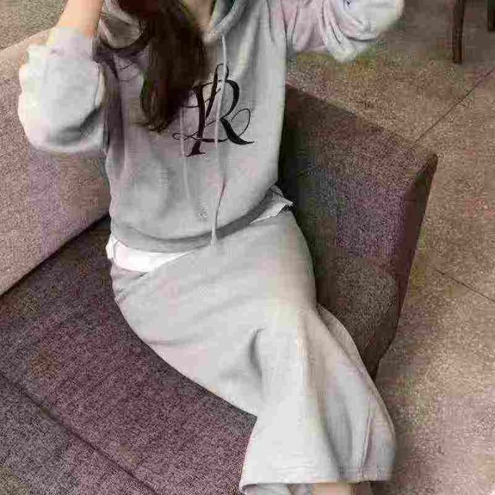休闲百搭连帽字母印花卫衣+高腰显瘦后开叉半身裙女套装 数量65套左右 尺码M--XL 内加绒 独立包装 货品干净整洁