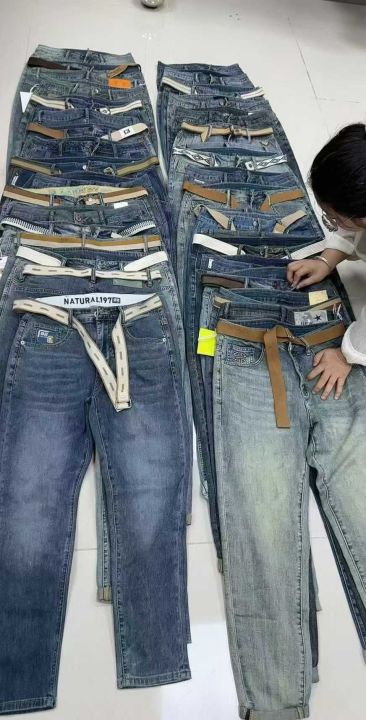 特色:80 %带弹力,时尚年轻靓仔款,阔腿裤、工装裤、老爹裤、直阔裤,无瑕疵,独立包装吊牌