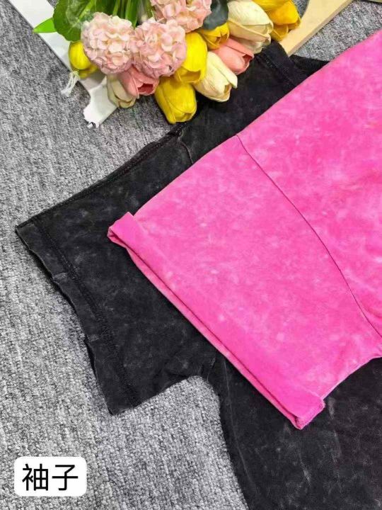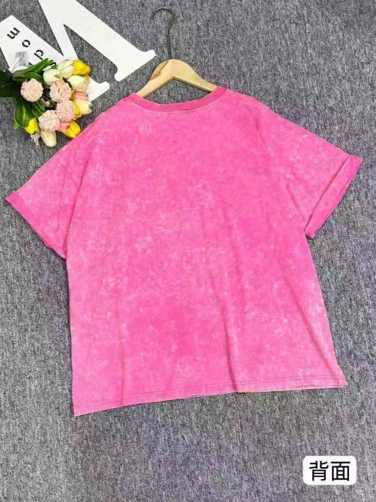 捡漏650件纯棉美式复古水洗做旧女短袖宽松T恤,两整款...