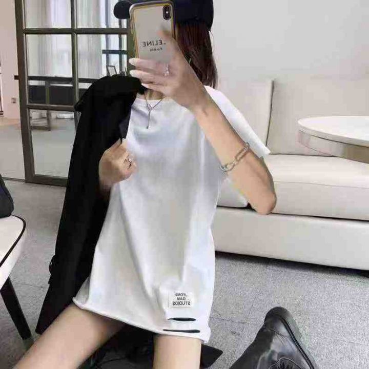 3.5清电商仓回收720件韩系纯棉破洞叠穿打底衫宽松中长款短袖t恤女,码数S-2...