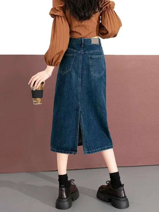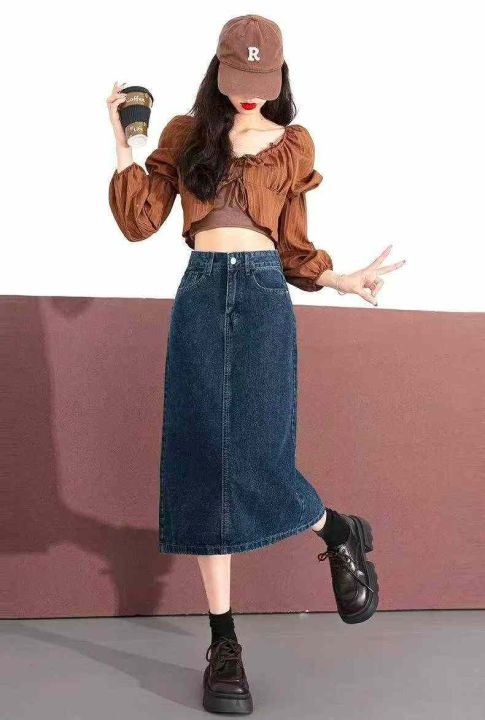 牛仔长裙☕️120条全清13.8元,码数SML,独立包装,蓝色开叉设计牛仔裙设计感半身长裙女春秋高腰a字裙百搭款