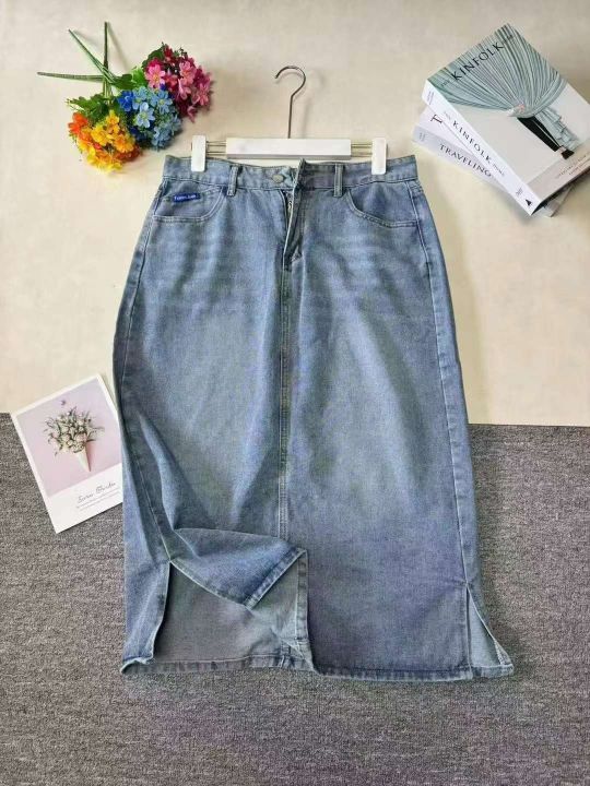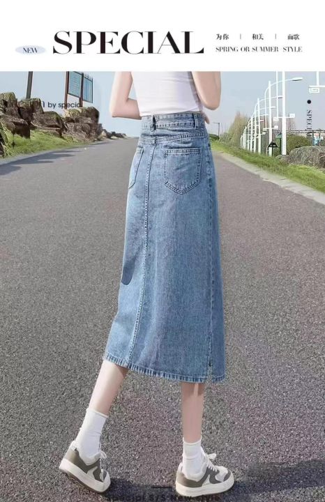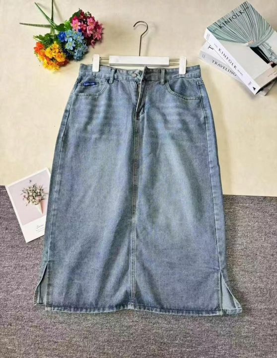 编号:K620#春装新款女时尚通勤中长款水洗开叉牛仔裙1...