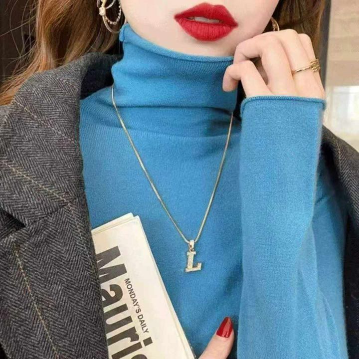 秋冬新款高品质网红弹力修身显瘦卷边高领温柔风包芯纱...