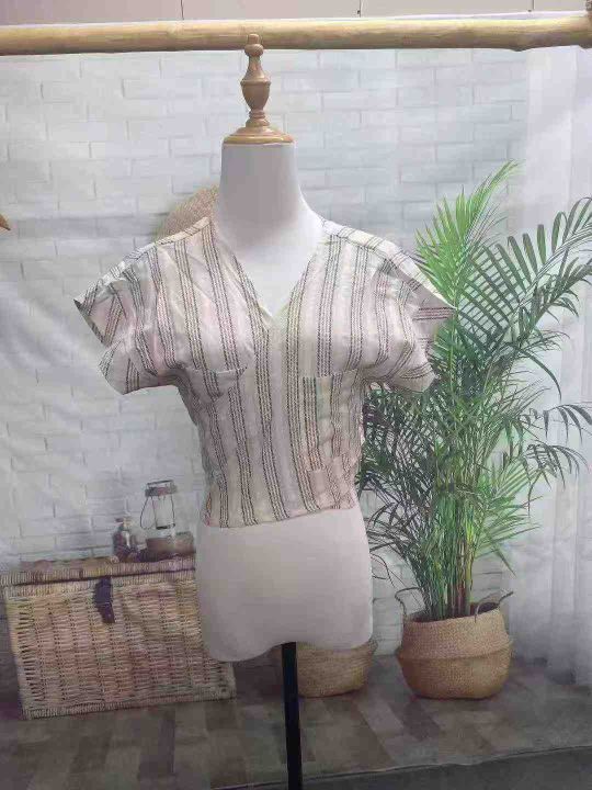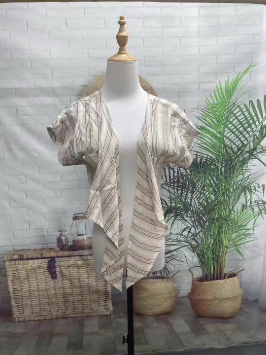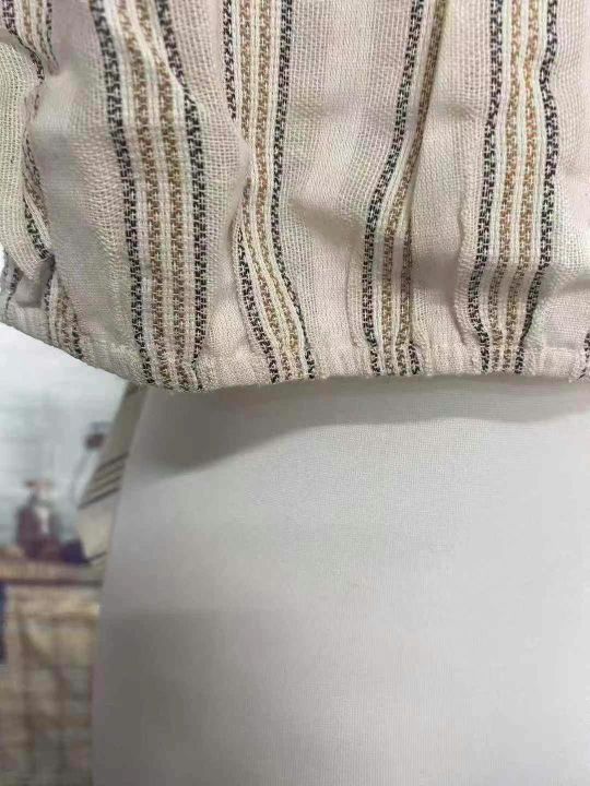 [得意]2.8元全清,设计感条纹亚麻透气宽松显瘦短袖披肩上衣,独立包装,S-XL,108件左右