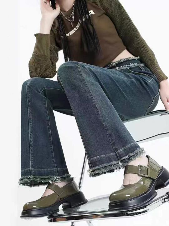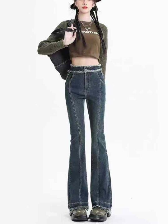 春秋新款高品质高弹力洗水棉网红微喇叭牛仔长裤,独立...