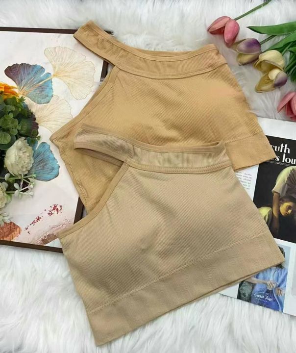 带胸垫斜肩背心修身短款辣妹性感内搭外穿百搭运动背心...