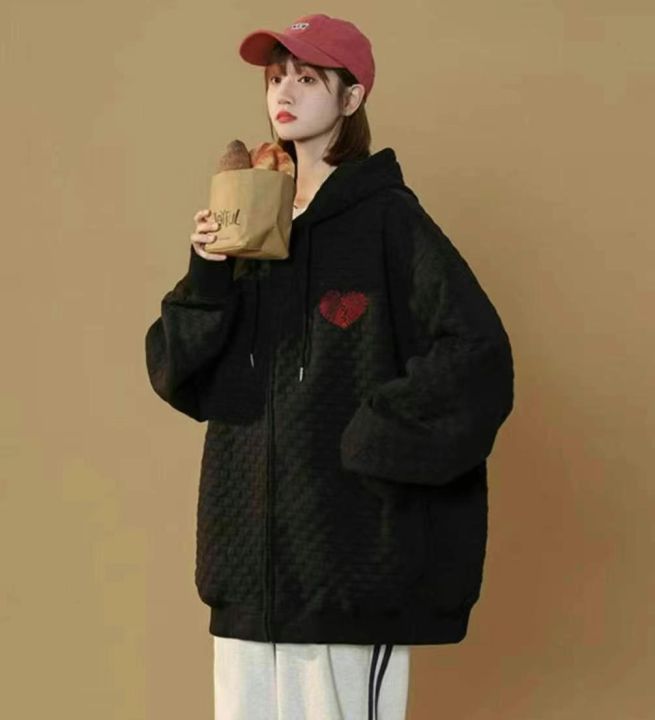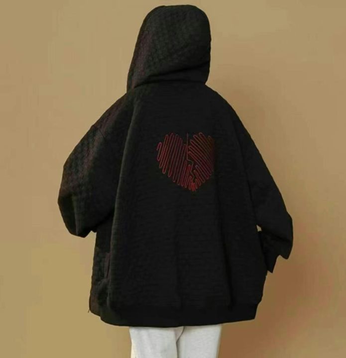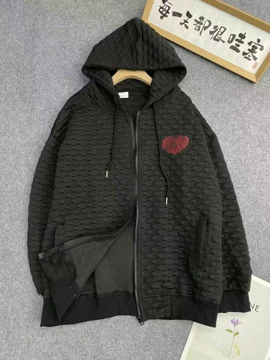 情侣款华夫格连帽外套104件13.8,前后图案刺绣,有口...