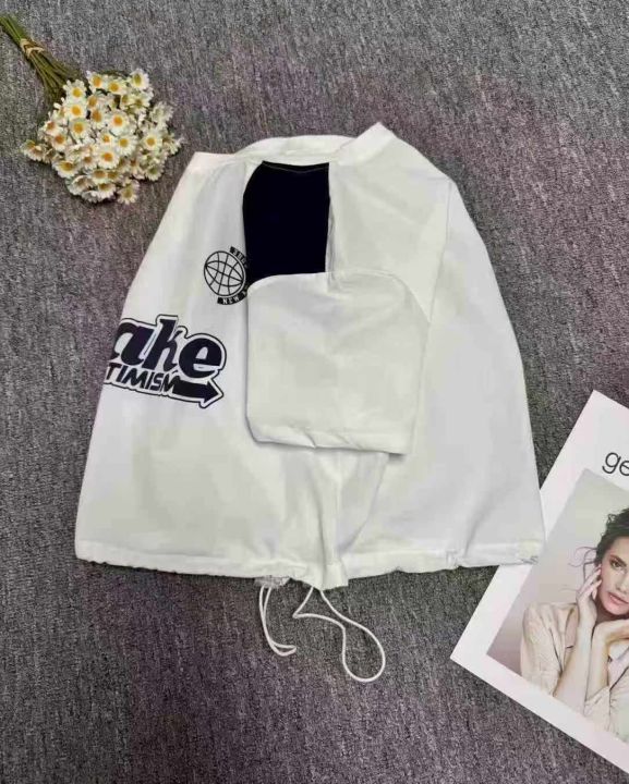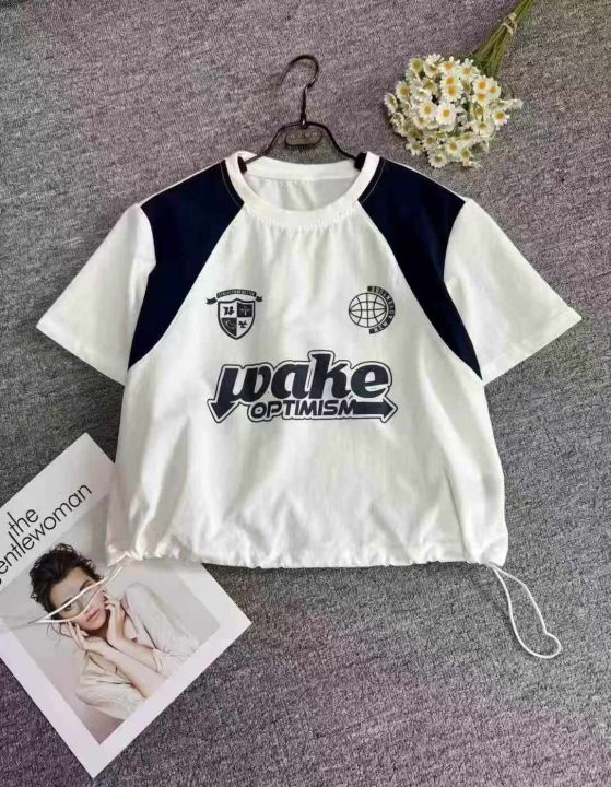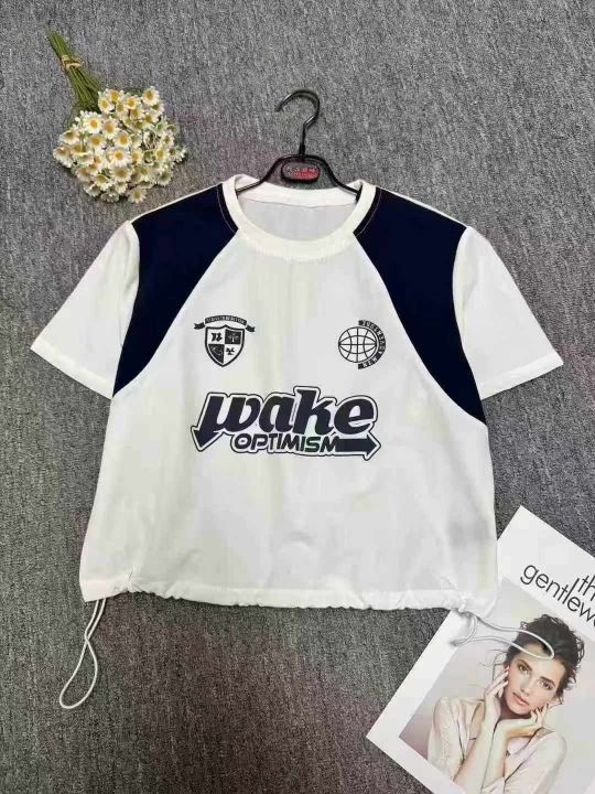 夏季潮流印花拼接短袖上衣,单款单色,下摆抽绳收腰设计,领口有包边,品质好,数量110件左右,码数s-2xl,全清7.9(不分货)