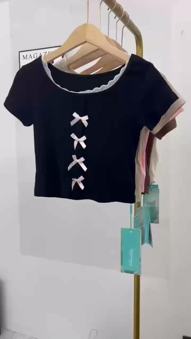 全清8.8元/清238件品牌甜辣风蕾丝拼接蝴蝶结短袖,单款5色,均码,面料螺纹...