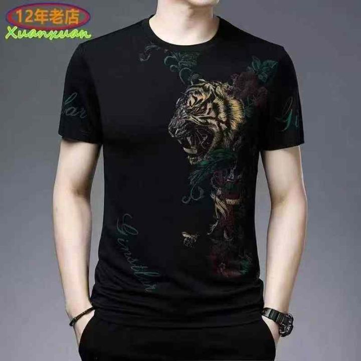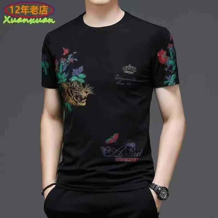 夏季男士短袖T恤印花圆领冰丝上衣中潮流体恤,几个花...