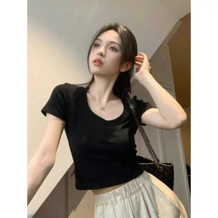 电商仓回收821件辣妹时尚露脐修身T恤,码数S-2XL。正肩版型有弹力,显瘦百搭,全部都有独立包装。