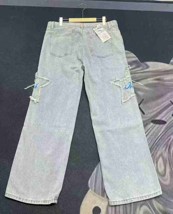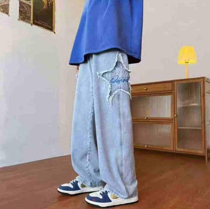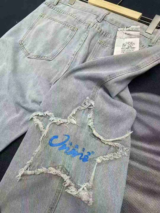 天猫在售款300件左右高品质男装美式潮牌星星刺绣宽松阔腿牛仔裤,单款单色,S-3XL(中间码多)全新扣眼未开独立包装带吊牌