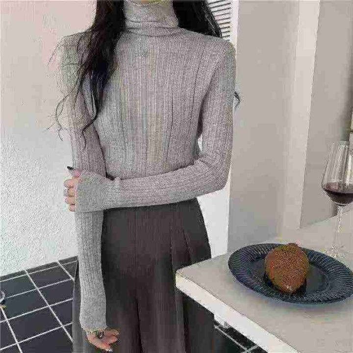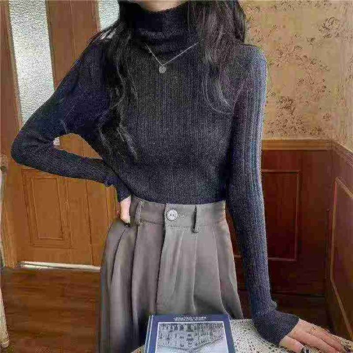 秋冬荷叶领针织衫女高腰短款长袖毛衣新款修身减龄打底衫内搭上衣,独立包装...